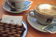Geeister Cappuccino Ein einmaliges Erlebnis ist ein beschlagenes Glas eiskalten Cappuccinos an heißen Sommernachmittagen oder lauwarmen Nächten. Profis decken das ganze mit einer feuchten Serviette ab.